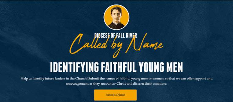The "Called by Name" campaign nominates young men to learn more about the priesthood. These men (once nominated) will get an invitation from the Bishop to attend a dinner for vocations. You can begin your nomination by clicking on the Submit Name image (above). Click HERE to view the "Letter to the Faithful" from Bishop da Cunha describing more about the campaign.