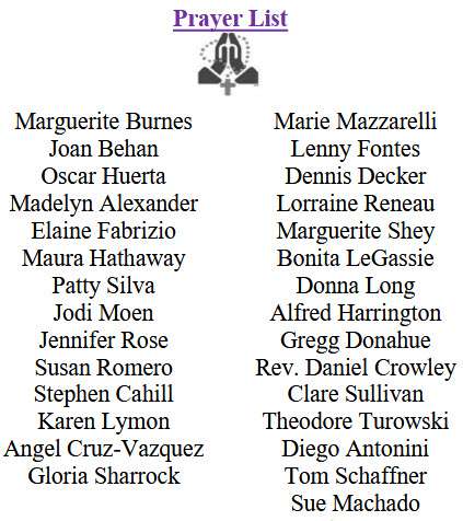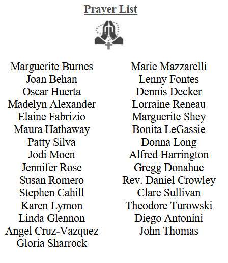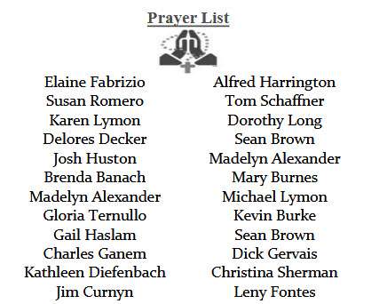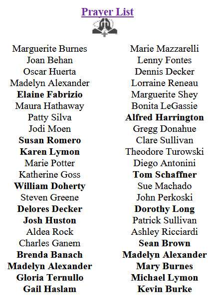 If you would like to have someone listed on our Parish Prayer List, please contact the office to add your loved one's name. Be sure to request the name(s) you would like listed with the correct spelling.
