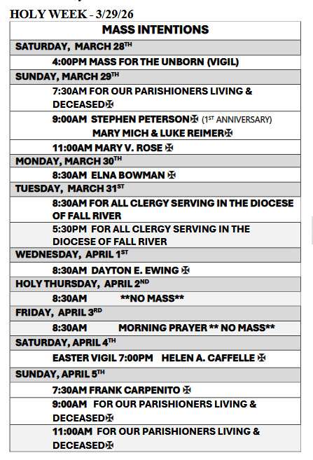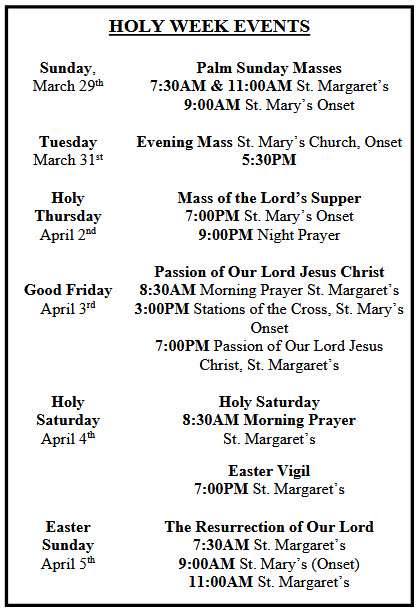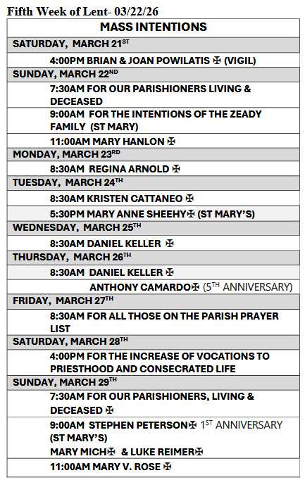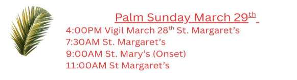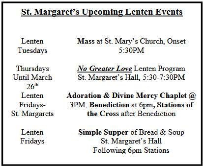 → For the Week of March 15th, the Offertory Wine/Altar Bread at St. Margaret's and St. Mary's will be For Our Parishioners