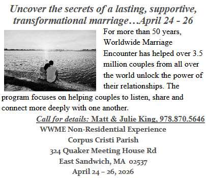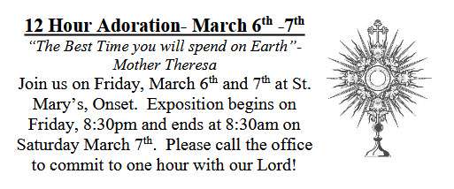 We are in need of Altar Servers to assist at Mass. Anyone who has received their First Communion is able to serve. Please consider becoming a part of this beautiful ministry serving God in a special way. Please contact the office for more information. (508) 759-7777