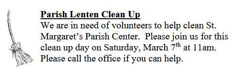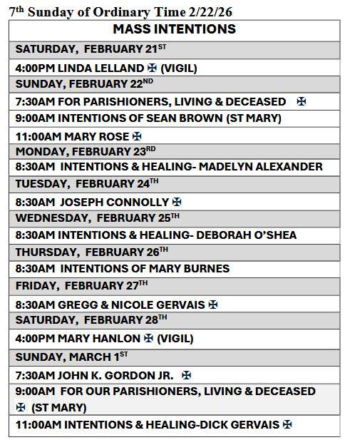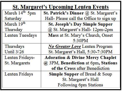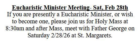 → For the Week of February 22nd, the Offertory Wine/Altar Bread at St. Margaret's and St. Mary's will be For Our Parishioners