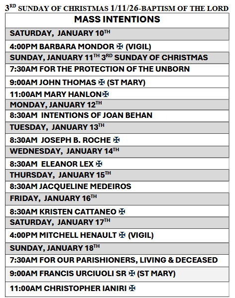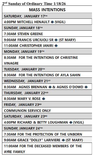 For the Week of January 11th, the Offertory Wine/Altar Bread at St. Margaret's and St. Mary's will be For Our Parishioners