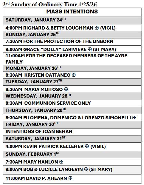 For the Week of January 18th, the Offertory Wine/Altar Bread at St. Margaret's and St. Mary's will be For Our Parishioners